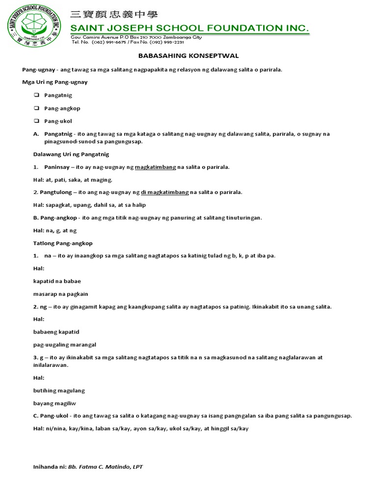 Ito ay ang mga katagang nag-uugnay sa panuring at salitang tinuturingan. Pang-angkop ligature - mga katagang nag-uugnay sa panuring at salitang tinuturingan c. Anupat kung gayon samakatuwid alalaong sana sa isang salita sa madaling sabi at kaya.